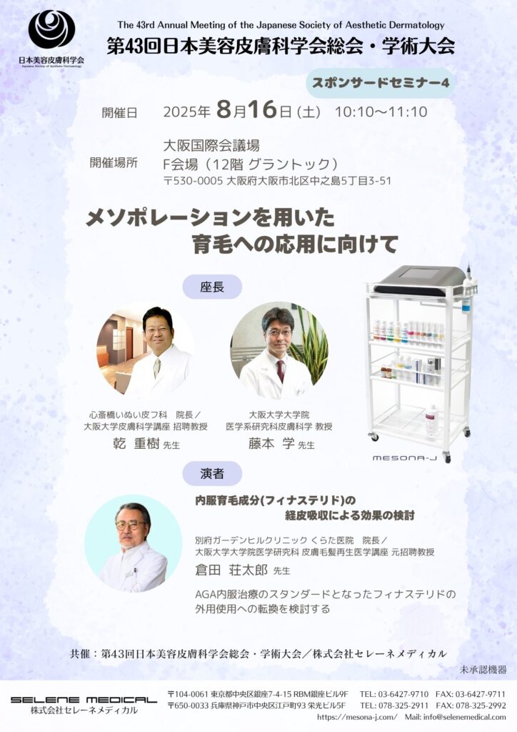 【大阪府】第43回日本美容皮膚科学会総会・学術大会 出展とスポンサードセミナー共催のお知らせ